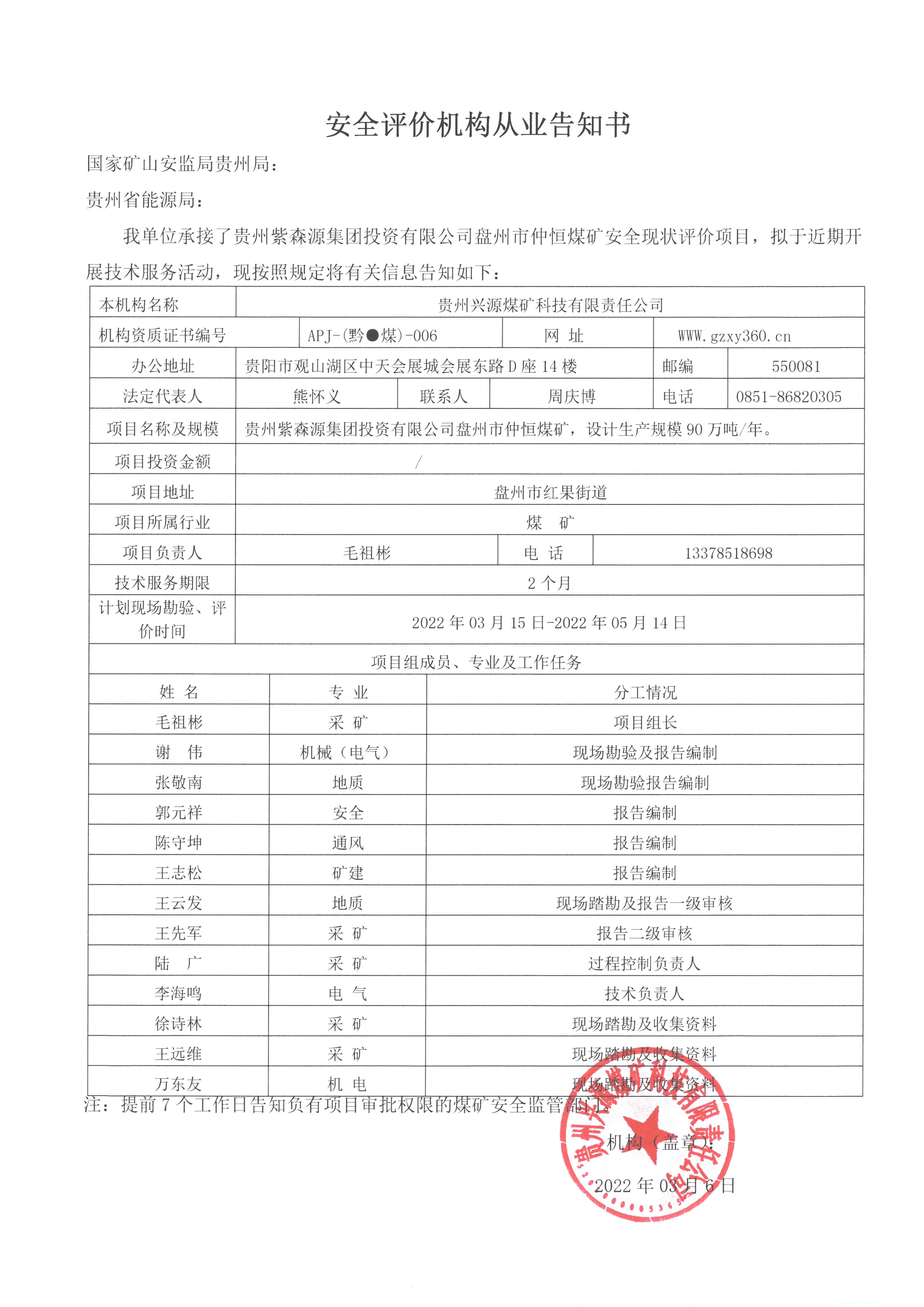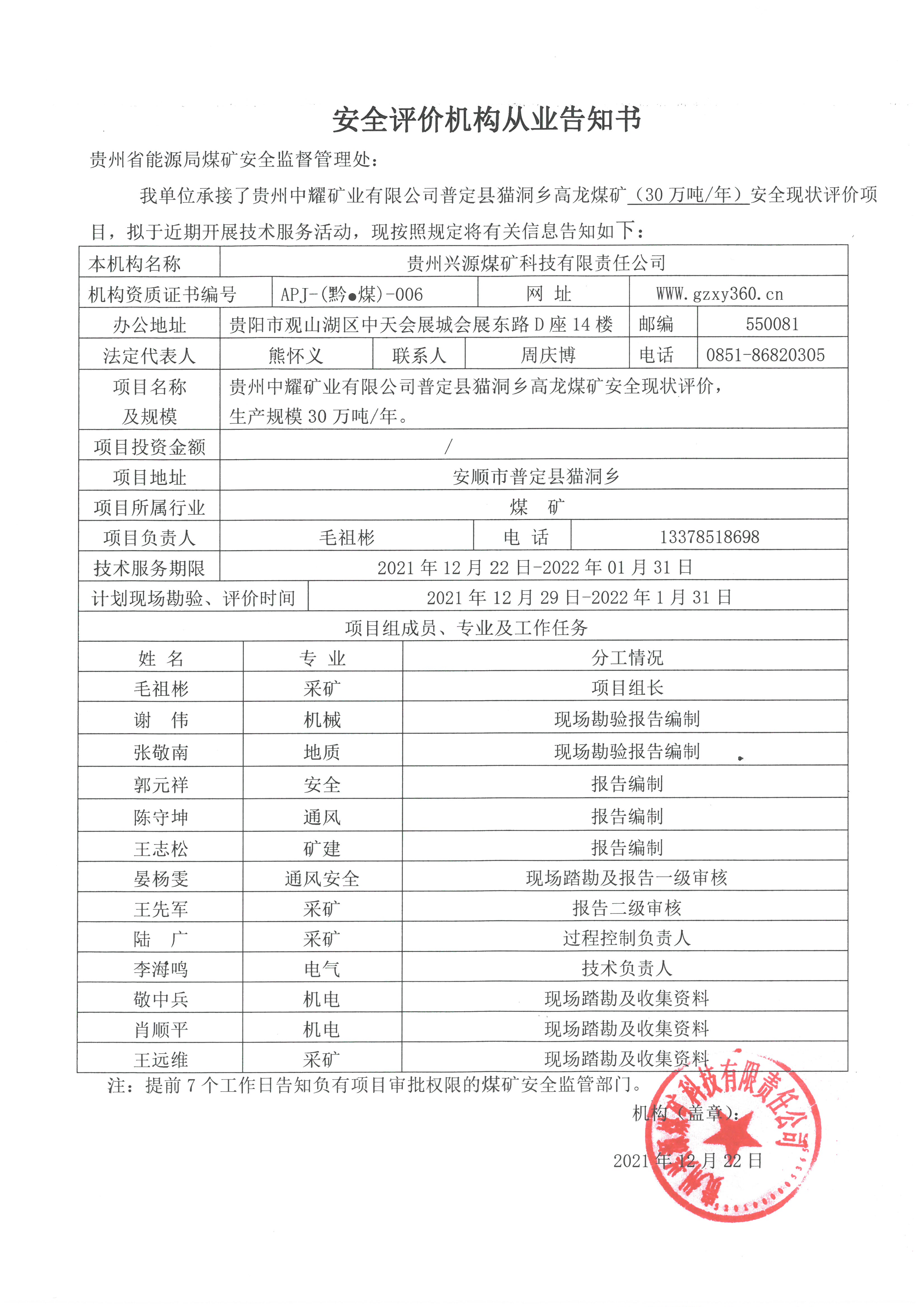 Notice of publicity