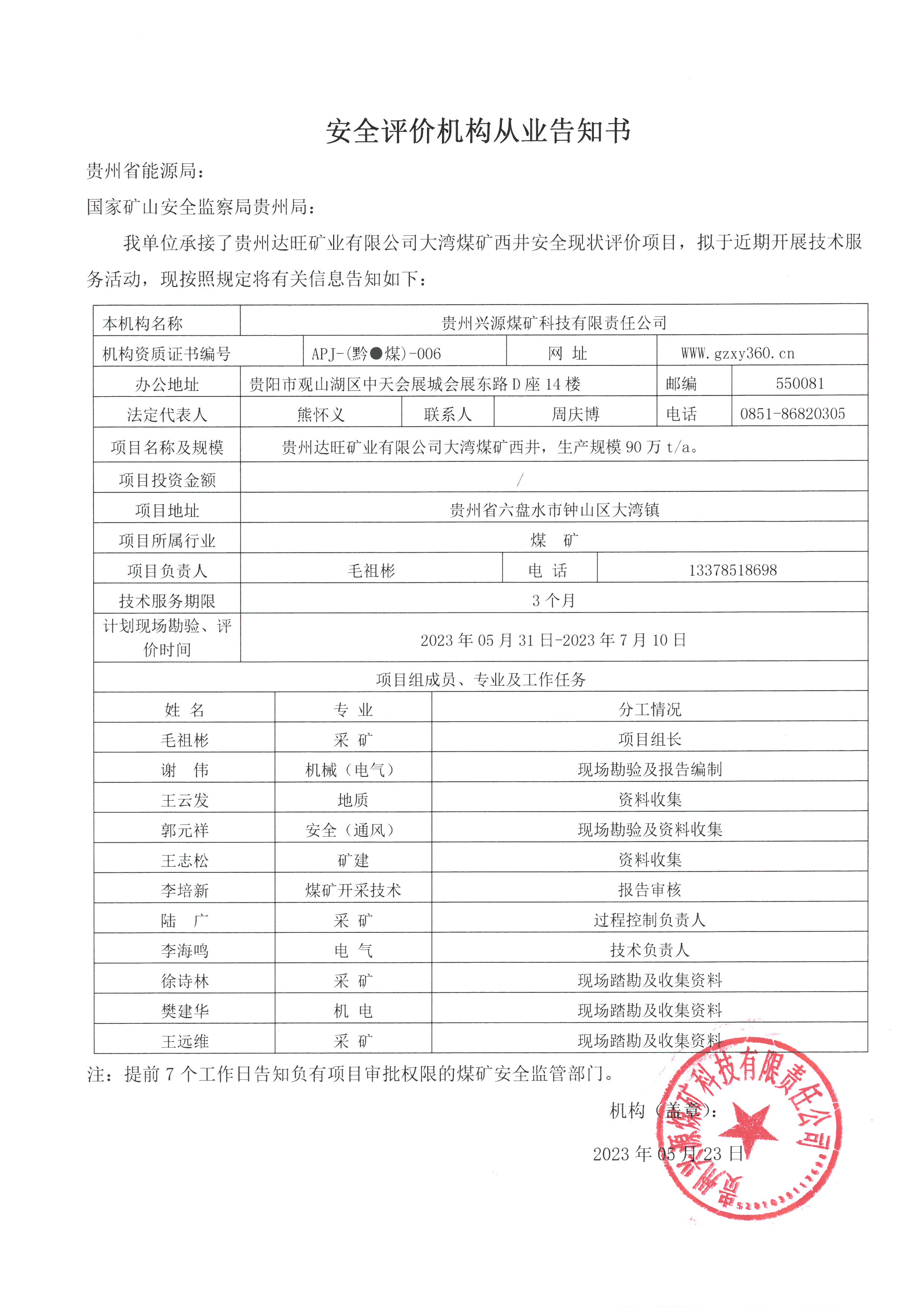 Notice of publicity